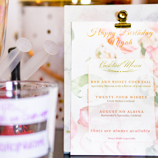 In the midst of the turn up.....I wanted to support black businesses and creatives in the process. I used a lot of close connections with people I've known and respected to collaborate on various things for the party to be a success. Everything down to the photographer, the DJ who created a playlist, the creator of the drink menu, were all from a black business. (Tags below) I wanted to provide some type of recognition and exposure in some way to the individuals that I did because, I admired their dedication to their craft. and of course because...........FOR US BY US.